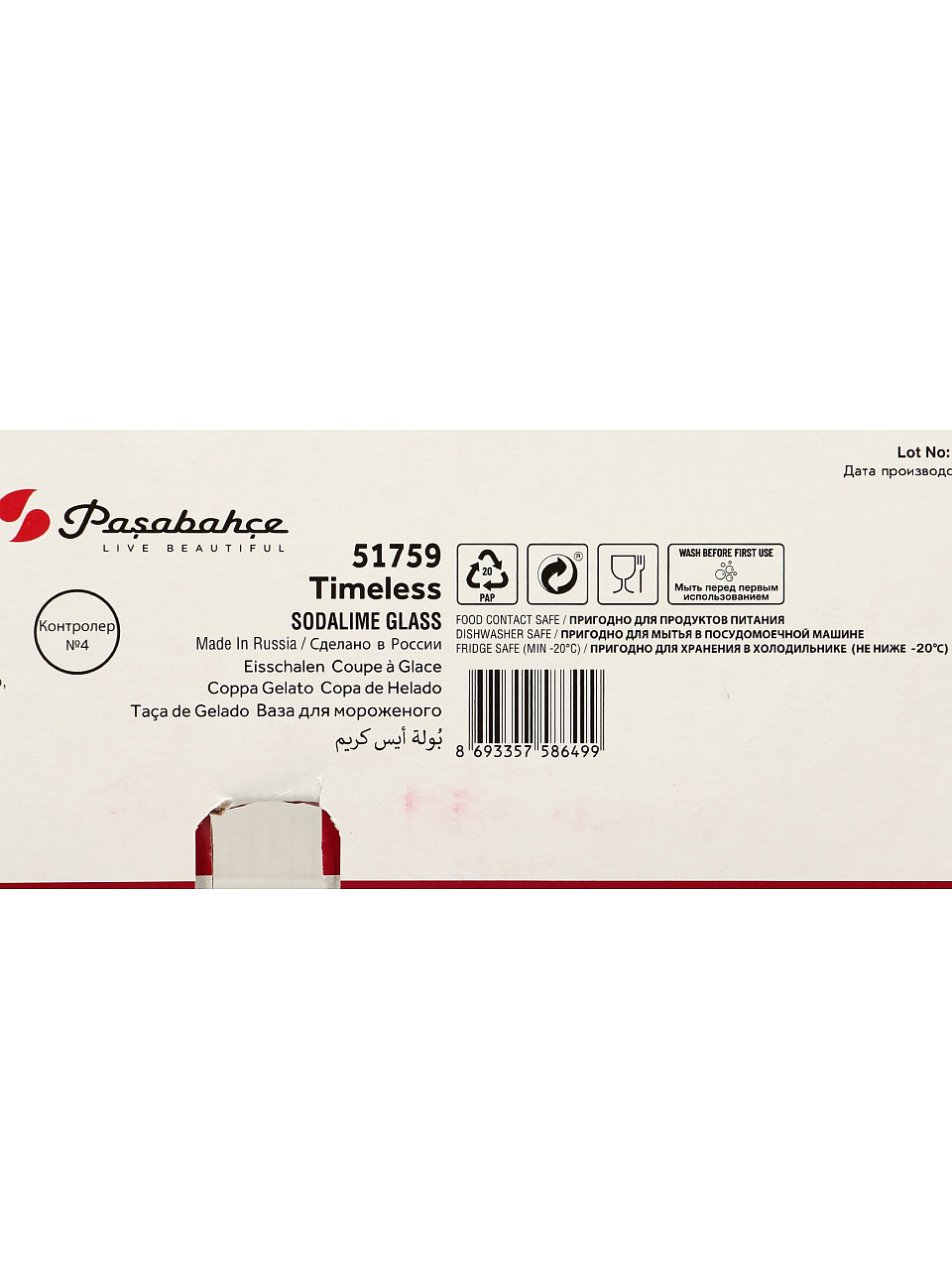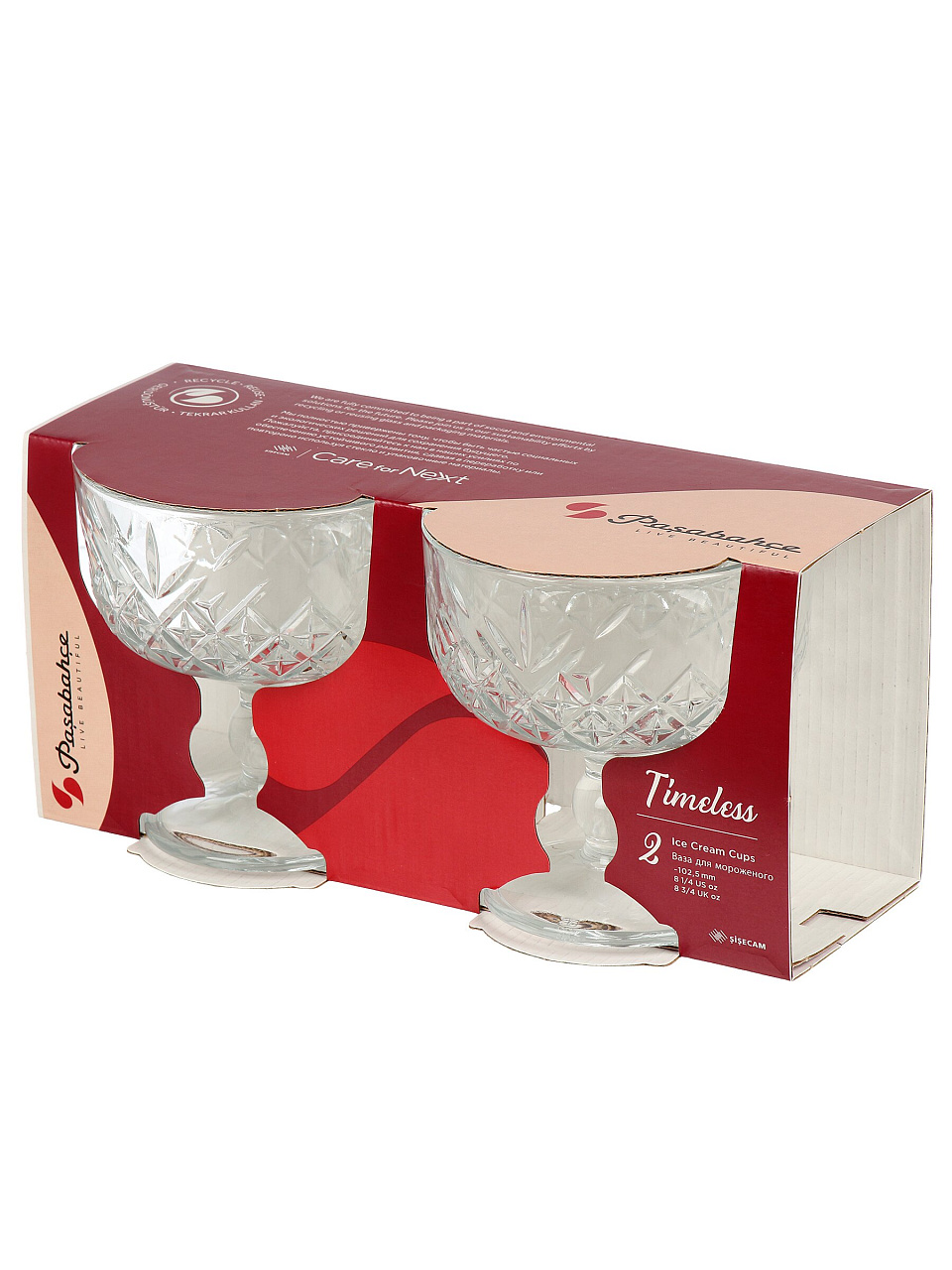 Ваза для мороженного стекло, 2 шт, 270 мл, 10.25 см, бесцветная, Pasabahce, Timeless, 51759B