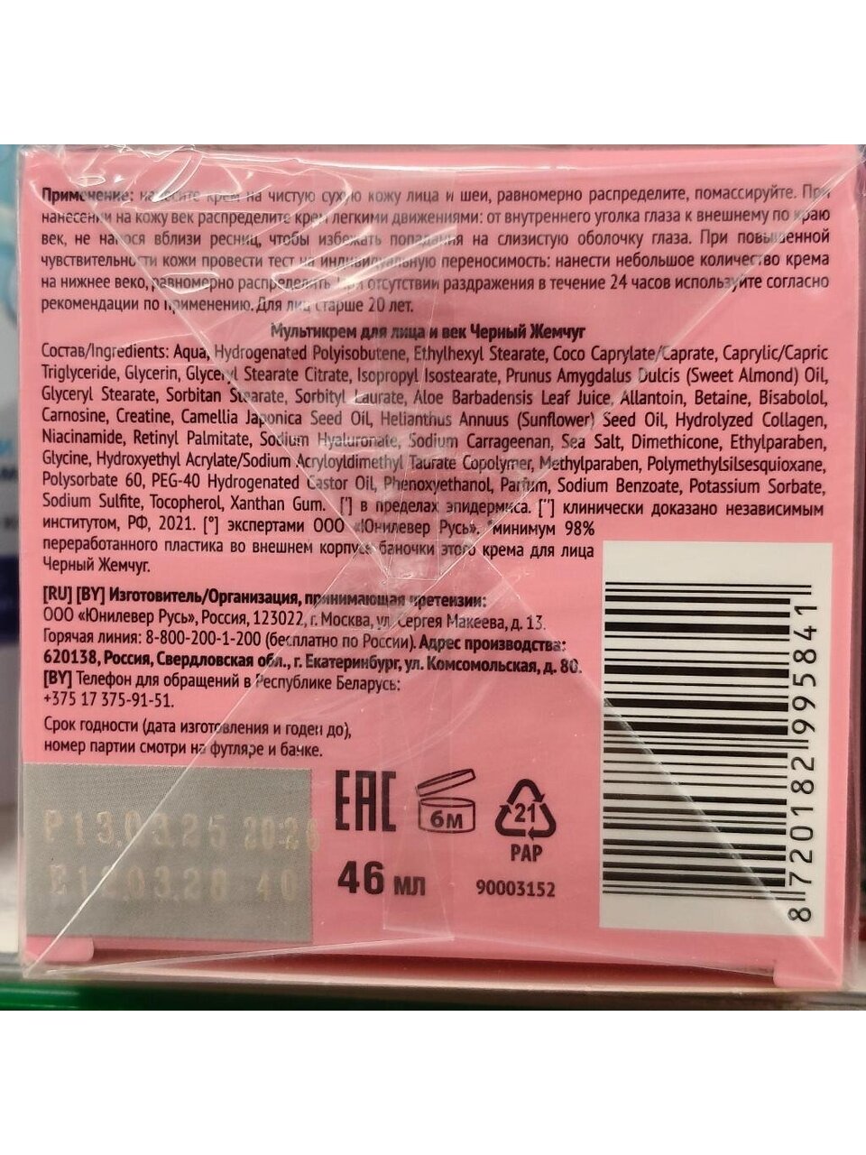 Мультикрем для лица и век Черный жемчуг — идеальный выбор для ежедневного ухода за кожей. Благодаря универсальной формуле крем подходит для кожи лица и области век, обеспечивает эффективное увлажнение и заботу. Объем 46 мл позволяет использовать средство экономно и удобно. Продукт произведен брендом Черный жемчуг, что гарантирует высокое качество и надежность.