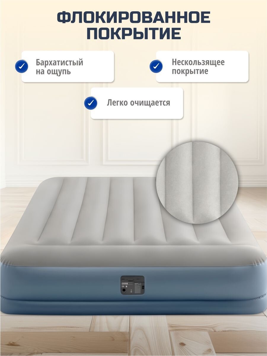 Вы можете приобрести «Кровать надувная Intex, 203х152х30 см, 64118ND, насос встроенный, электрический, флокированная, 272 кг» и другие товары в нашем интернет-магазине в Белгороде по низким ценам и с бесплатным самовывозом.