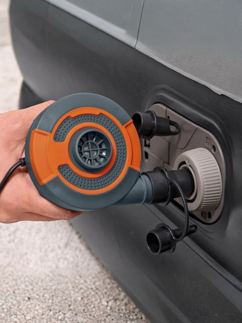 - Матрас можно надуть за короткое время, просто подключив его к источнику питания и нажав кнопку.