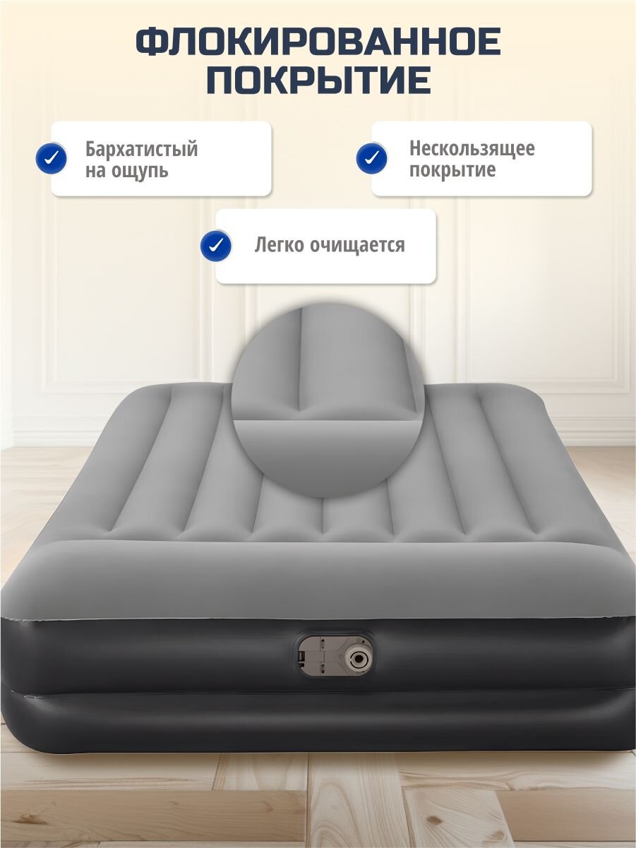- Встроенный электрический насос (предназначен для автоматического надувания/сдувания матраса, выгон воздуха вручную не требуется).