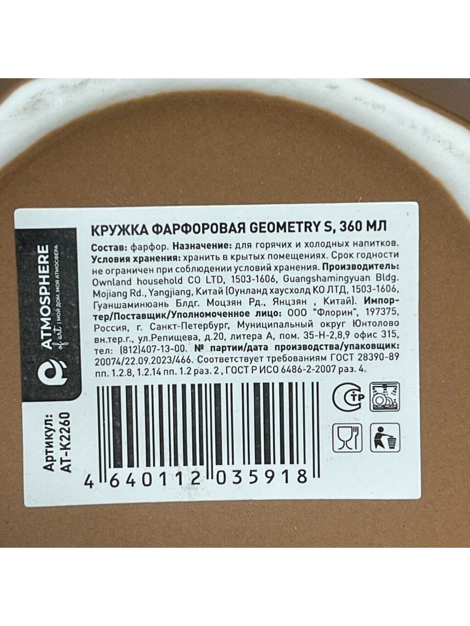 Вы можете приобрести «Кружка фарфор, 360 мл, Geometry S, Atmosphere, AT-K2260» и другие товары в нашем интернет-магазине в Нижнем Новгороде по низким ценам и с бесплатным самовывозом.