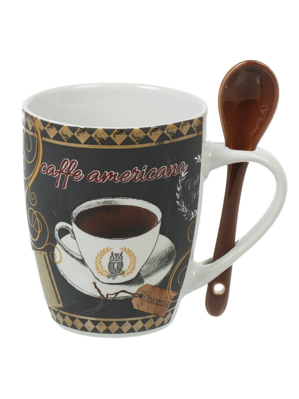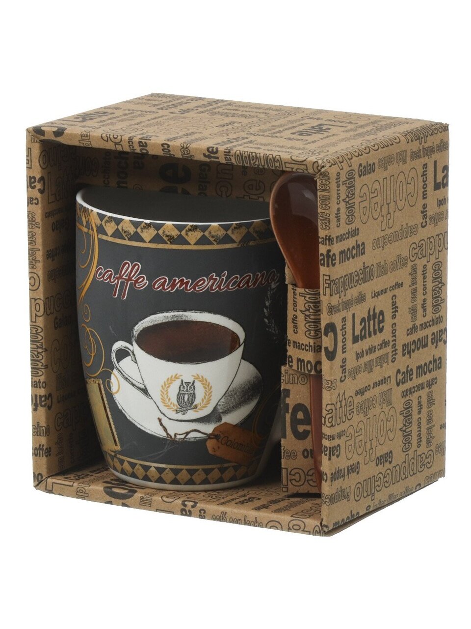 Керамическая кружка «Бочка Аромат кофе» 340 мл с ложкой: стильный подарок и уют для дома, подходит для посудомоечной машины, доставка быстро!