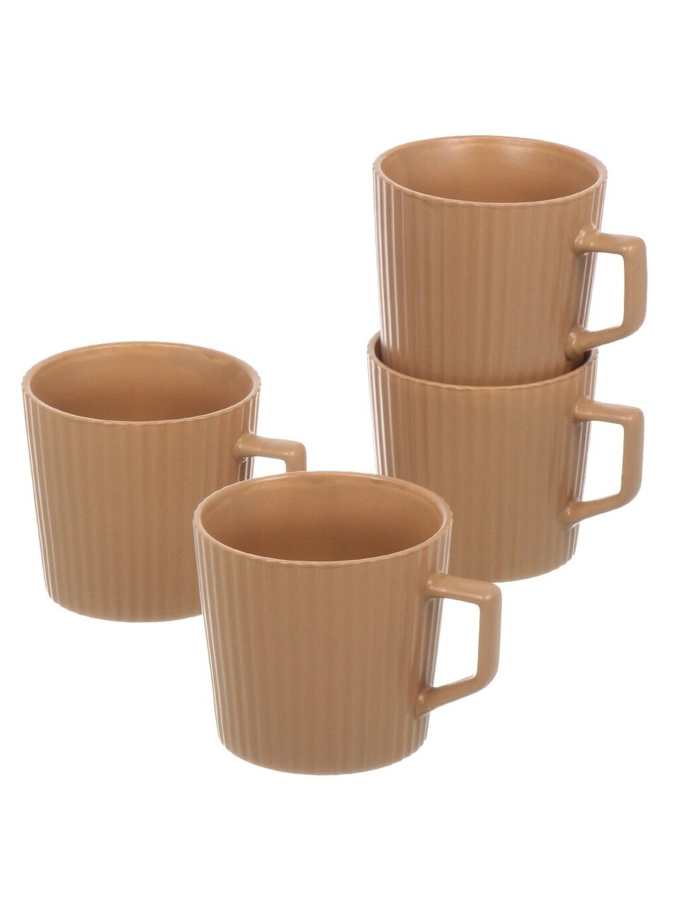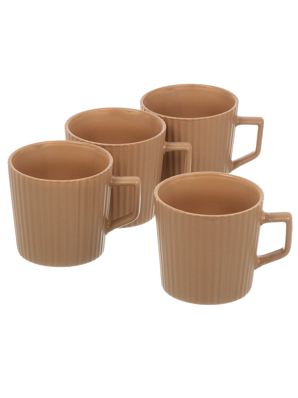 Керамические кружки Daniks Эльзас 350 мл, 4 шт — уют для дома и дачи: стильный набор, прочная керамика, бежевый цвет, подходит для СВЧ и посудомоечной машины.