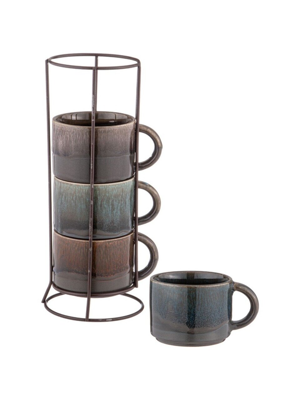 Каждая кружка создана с учетом актуальных тенденций: насыщенные цвета, глубокий блеск и оригинальная текстура покрытия делают каждое изделие уникальным. Керамика отличается прочностью и долговечностью, сохраняя тепло напитков надолго. Металлическая подставка позволяет аккуратно разместить кружки, экономя пространство на столе или полке, что особенно актуально для современных кухонь.