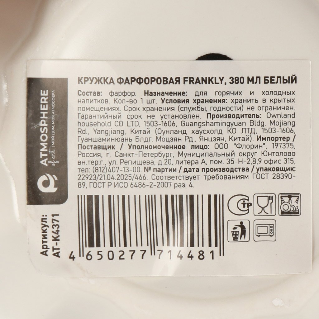 Вы можете приобрести «Кружка фарфор, 380 мл, Frankly, Atmosphere, AT-K4371, белая» и другие товары в нашем интернет-магазине в Липецке по низким ценам и с бесплатным самовывозом.