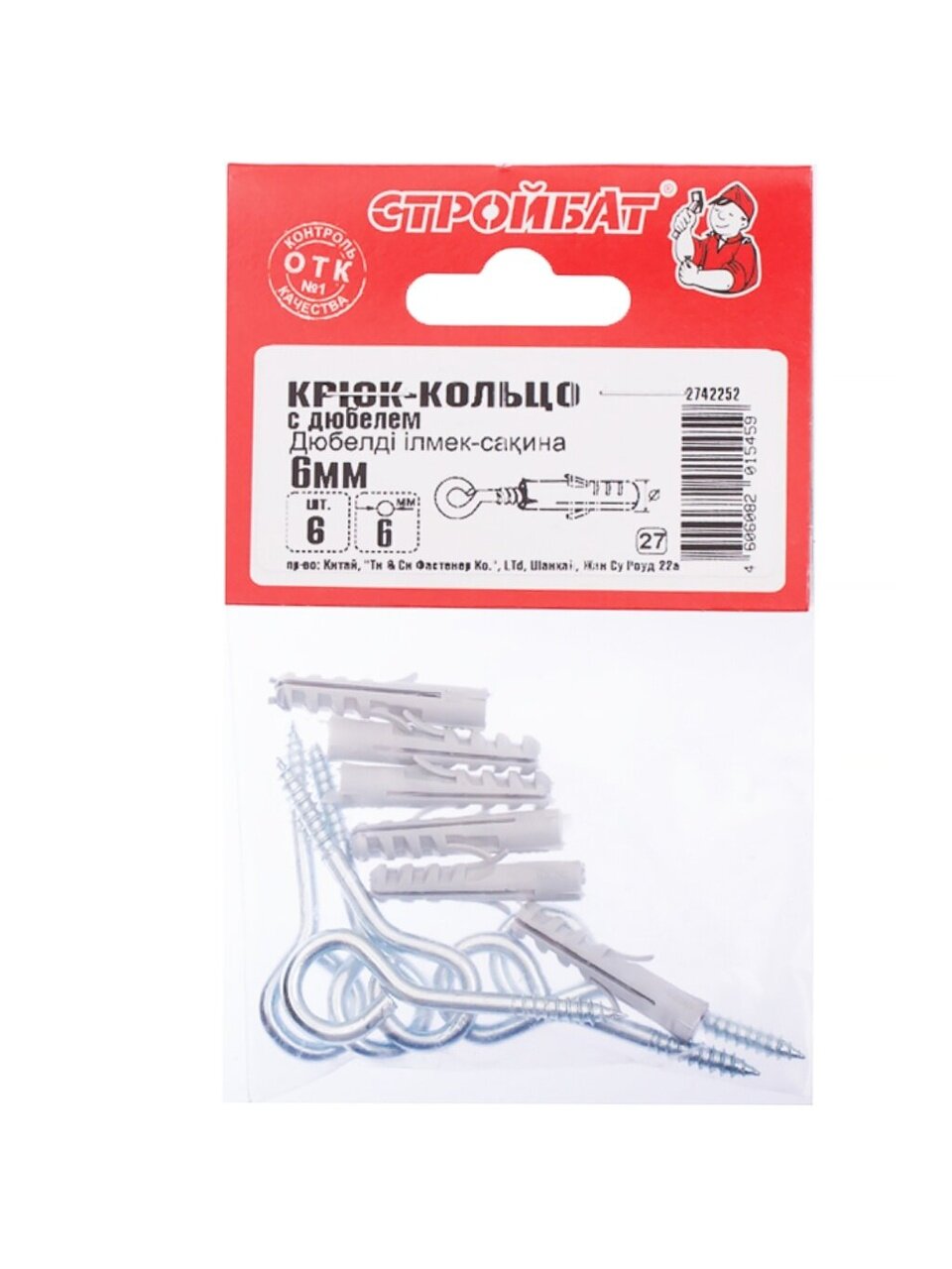 Вы можете приобрести «Крюк - кольцо с дюбелем, белый цинк, 6 мм, 6 шт, 244121» и другие товары в нашем интернет-магазине в Твери по низким ценам и с бесплатным самовывозом.