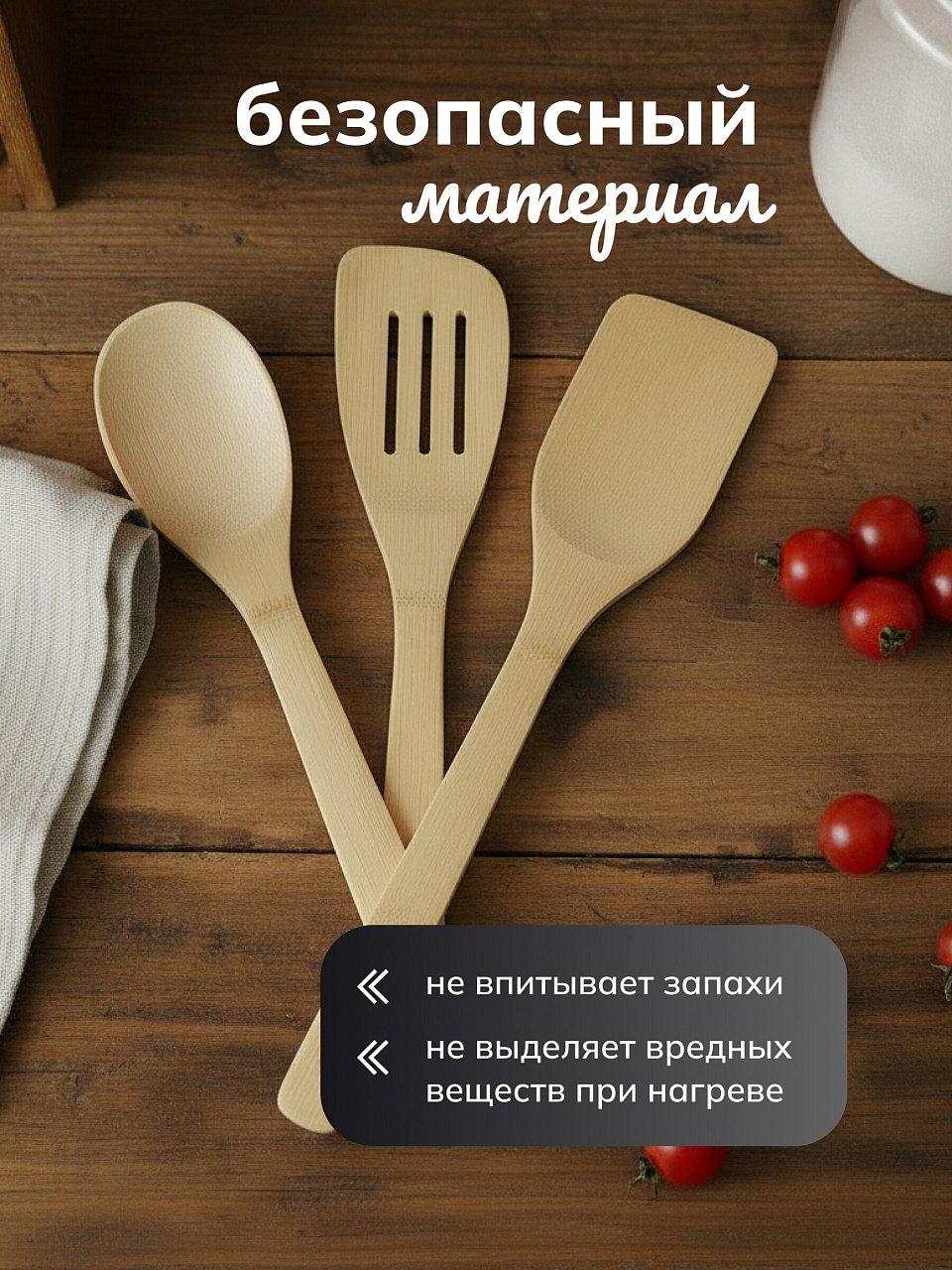 Вы можете приобрести «Набор кухонных принадлежностей 3 предмета, бамбук, C10-A268, ложка, вилка, лопатка» и другие товары в нашем интернет-магазине в Астрахани по низким ценам и с бесплатным самовывозом.