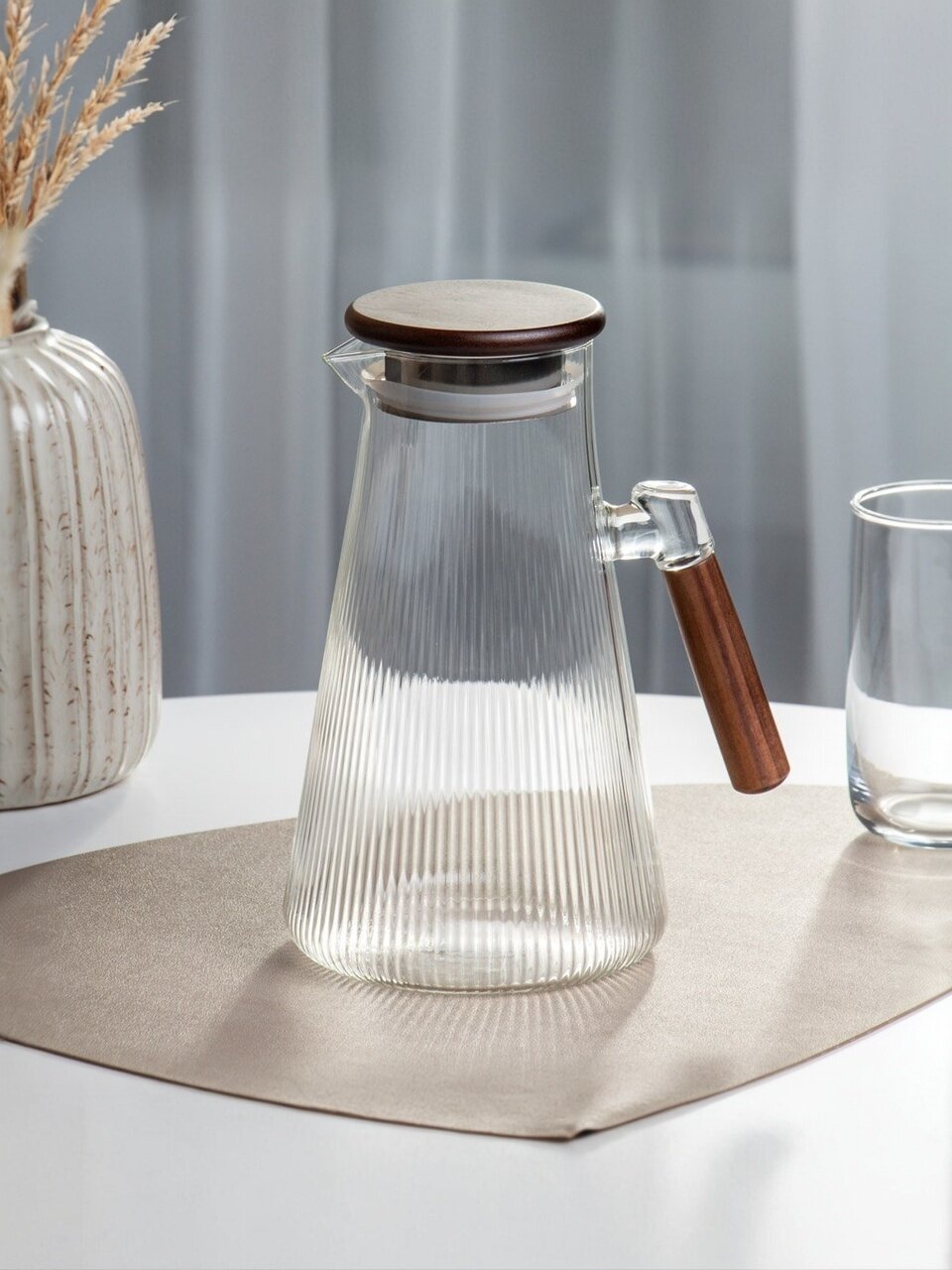 Кувшин для горячих и холодных напитков, 1.6 л, с деревянной ручкой и крышкой — идеальное решение для стильной сервировки стола и комфорта в повседневной жизни. Современный дизайн модели "Грани" гармонично впишется в любой интерьер кухни или столовой, добавив атмосферу уюта и элегантности. Прозрачное боросиликатное стекло позволяет наблюдать за содержимым, делая подачу напитков эффектной и привлекательной. Кувшин подойдет для воды, лимонада, чая, компота и сока, обеспечивая универсальность использования в любое время года.