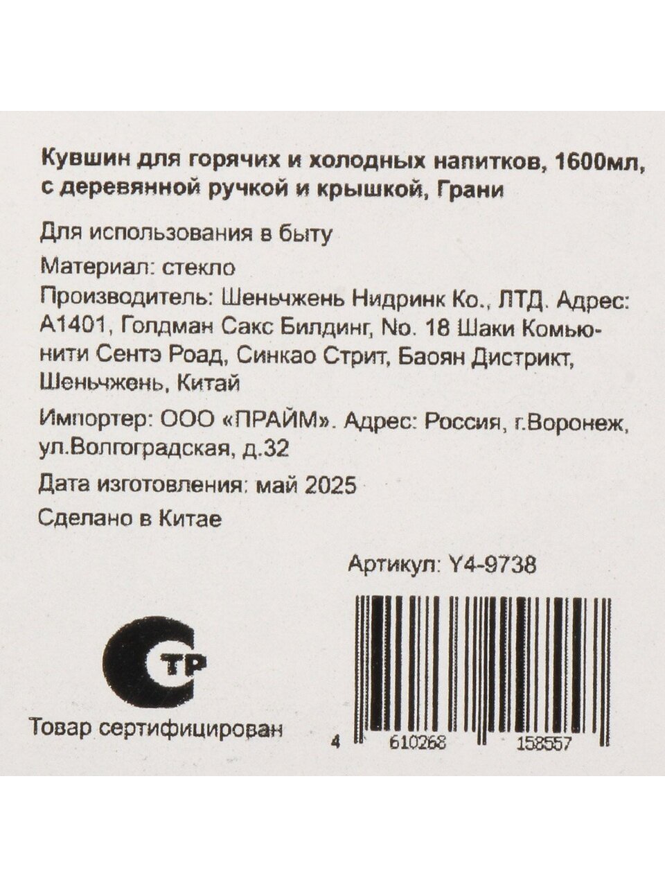 Вы можете приобрести «Кувшин боросиликатное стекло, 1.6 л, с крышкой, Грани, Y4-9738, для горячих и холодных напитков, с деревянной ручкой и крышкой» и другие товары в нашем интернет-магазине в Армавире по низким ценам и с бесплатным самовывозом.