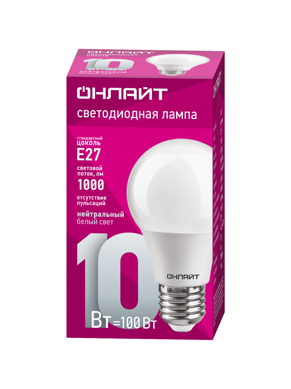 Вы можете приобрести «Лампа светодиодная E27, 10 Вт, 100 Вт, груша, 4000 К, нейтральный белый свет, Онлайт, 71650/82910» и другие товары в нашем интернет-магазине в Курске по низким ценам и с бесплатным самовывозом.