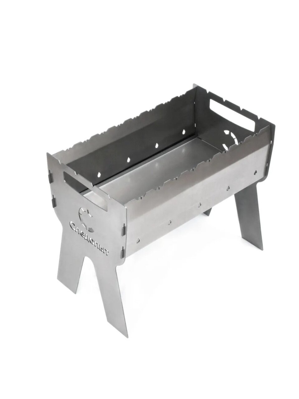 Мангал выполнен из стали толщиной 2 мм, что обеспечивает высокую прочность, устойчивость к коррозии и долгий срок службы даже при частом использовании.