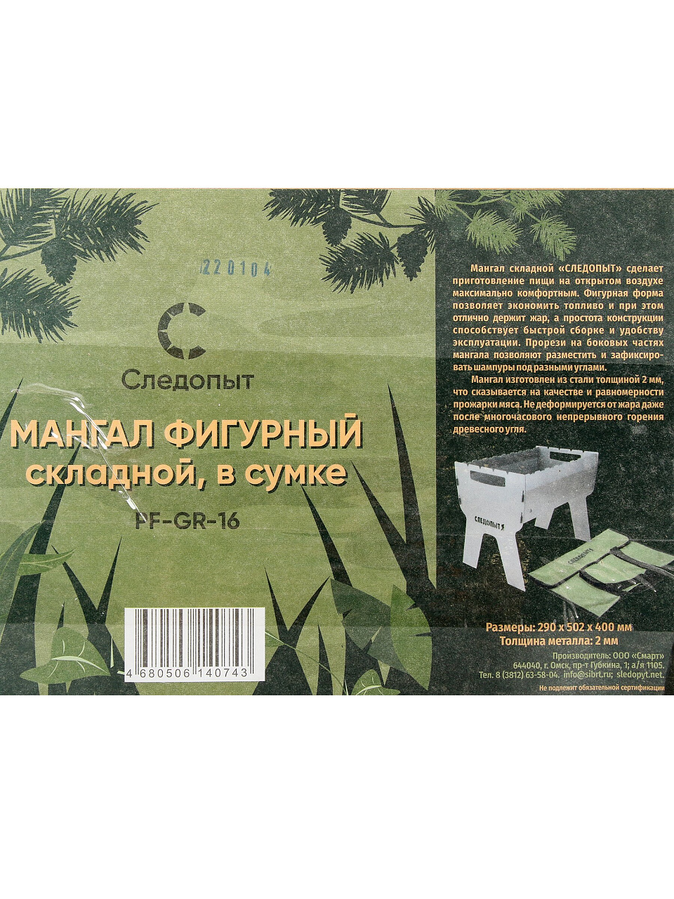 Выбирайте PF-GR-16 Следопыт — выгодная цена, удобная доставка и гарантия качества. Закажите сейчас и получите надёжный мангал для любых выездов на природу.
