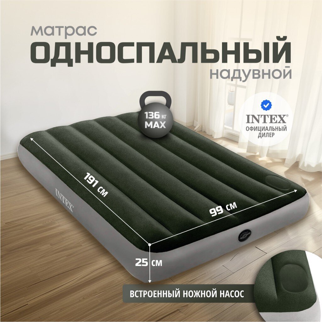 Вы можете приобрести «Матрас надувной Intex, 191х99х25 см, 64761, насос встроенный, ножной, флокированный, 136 кг» и другие товары в нашем интернет-магазине в Нижнем Новгороде по низким ценам и с бесплатным самовывозом.