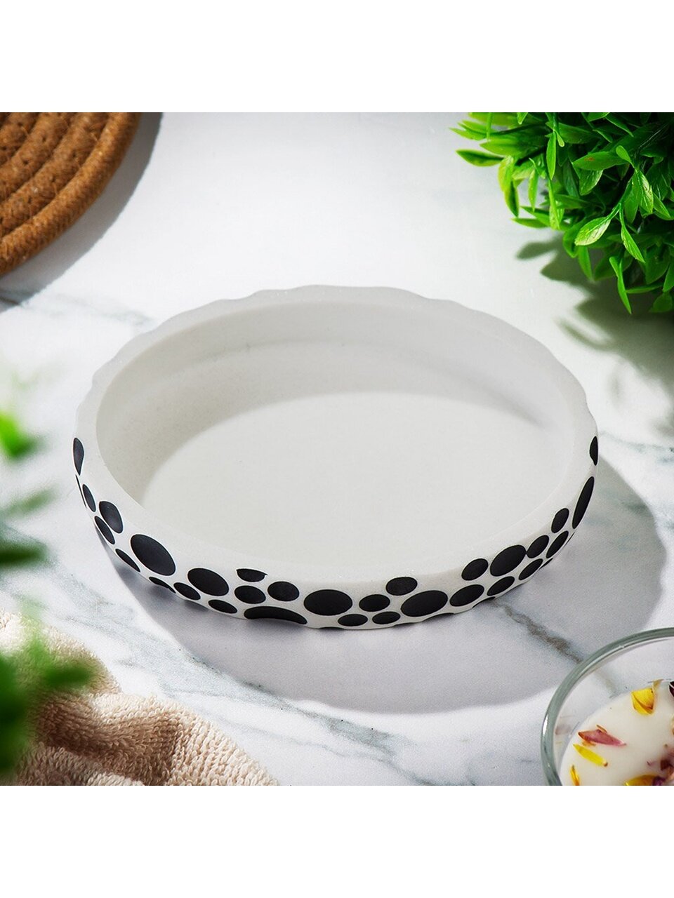 Мыльница выполнена в классическом черно-белом цвете, что позволяет ей гармонично вписаться в любой интерьер. Полистоун — материал, который сочетает в себе прочность и эстетическую привлекательность. Он устойчив к воздействию влаги и сохраняет свой первоначальный вид на протяжении долгого времени.