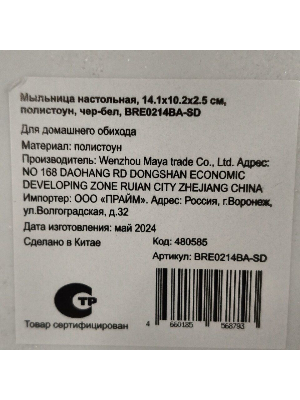 Вы можете приобрести «Мыльница настольная, полистоун, 14.1x10.2x2.5 см, черно-белая, BRE0214BA-SD» и другие товары в нашем интернет-магазине в Белгороде по низким ценам и с бесплатным самовывозом.