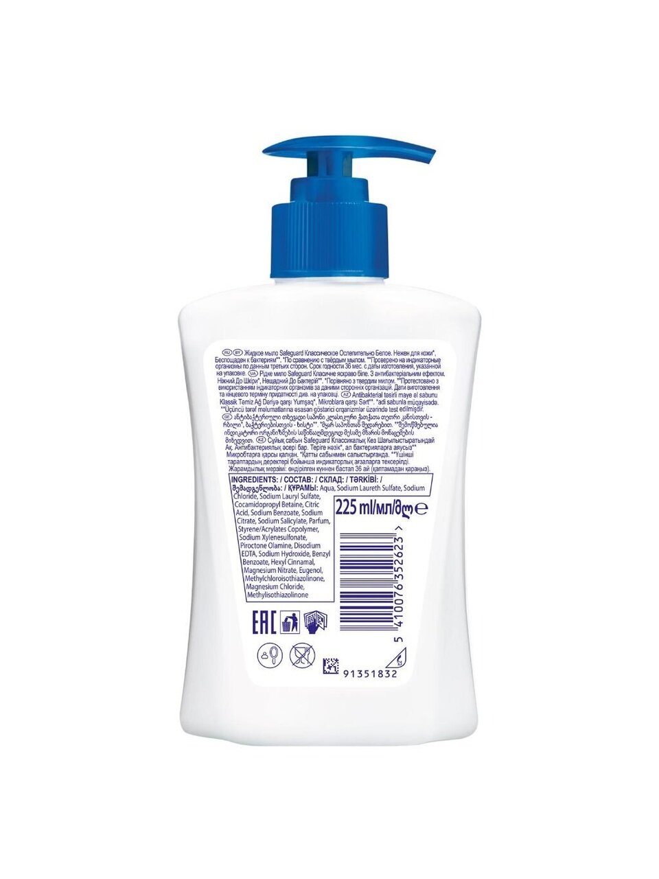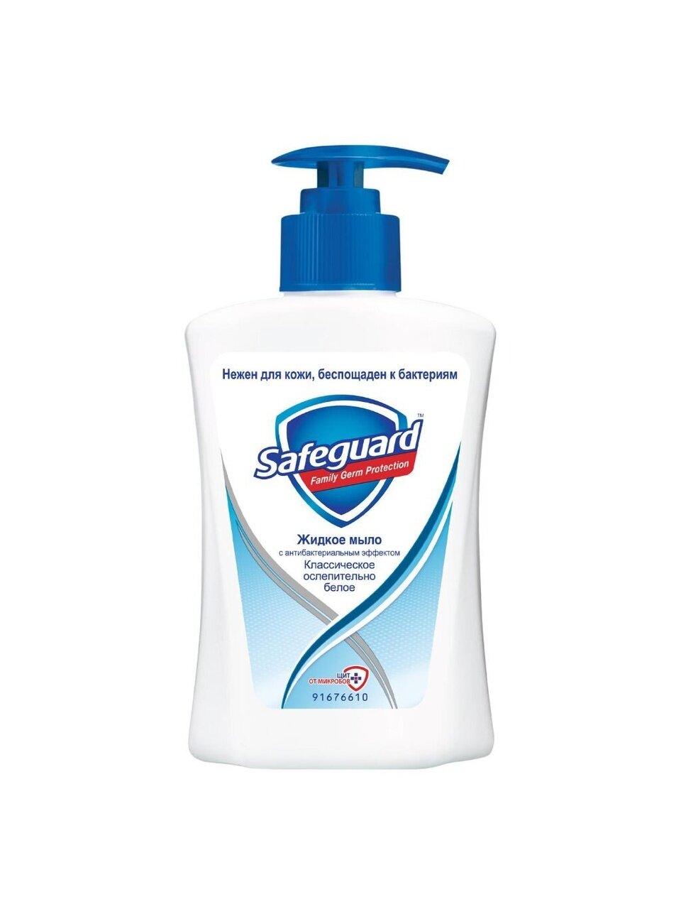 Мыло Safeguard на 100% рекомендовано специалистами по всему миру! Антибактериальное мыло Safeguard Классическое в удобной жидкой форме уничтожает до 99,9% всех известных болезнетворных бактерий и ухаживает за кожей рук: • поверхностно активные вещества эффективно удаляют все виды микробов в момент смывания • антибактериальный комплекс обеспечивает защиту от самых опасных граммоположительных бактерии (Стрептококк, Стафилококк) до 12 часов после смывания.
