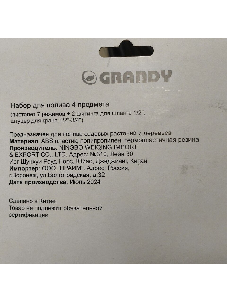 Вы можете приобрести «Набор для полива 4 предмета, пистолет 7 режимов, фитинги для шланга 1/2", штуцер для крана 1/2"-3/4", с наружней резьбой, Grandy, JS-9369» и другие товары в нашем интернет-магазине в Белгороде по низким ценам и с бесплатным самовывозом.