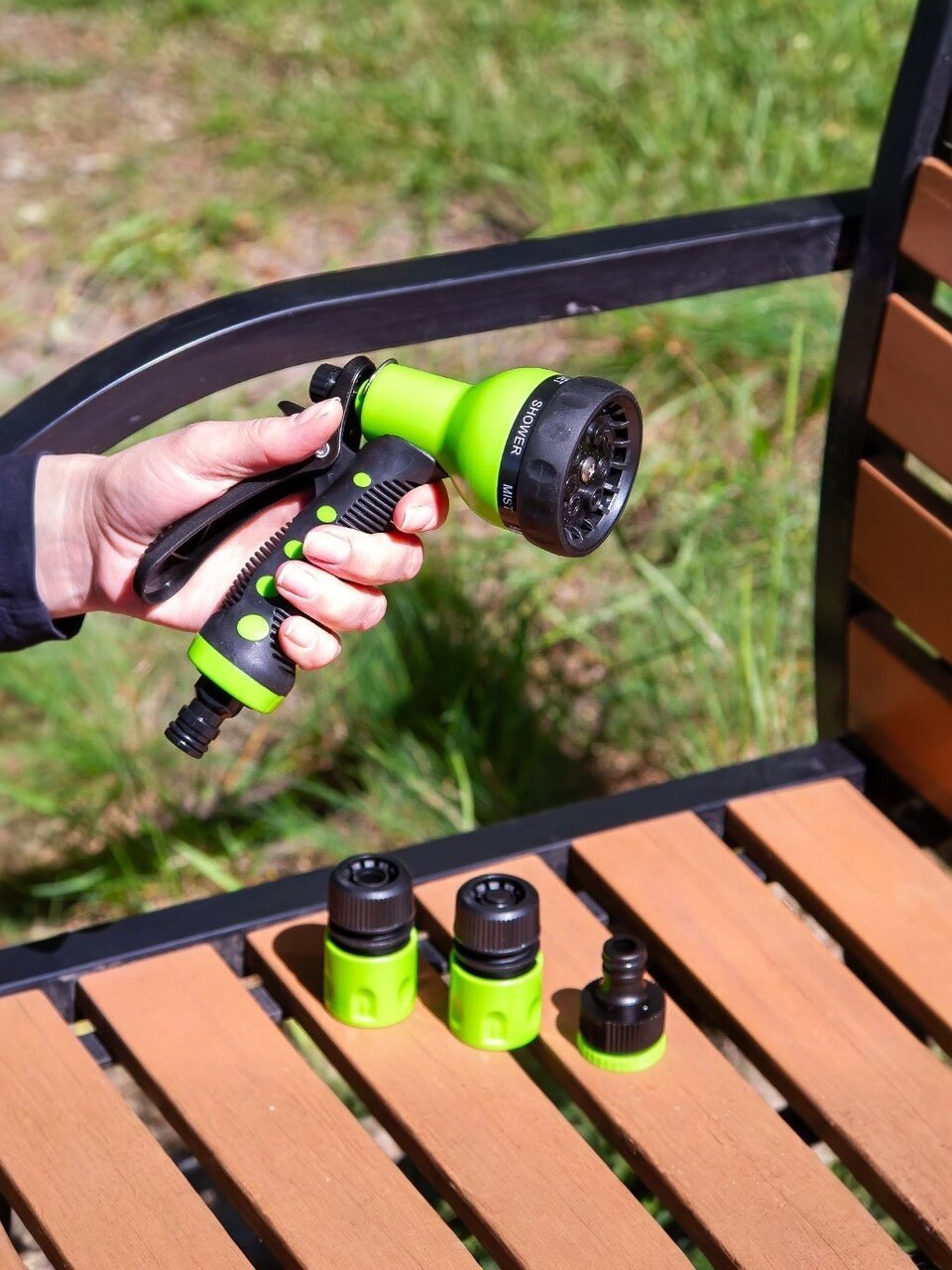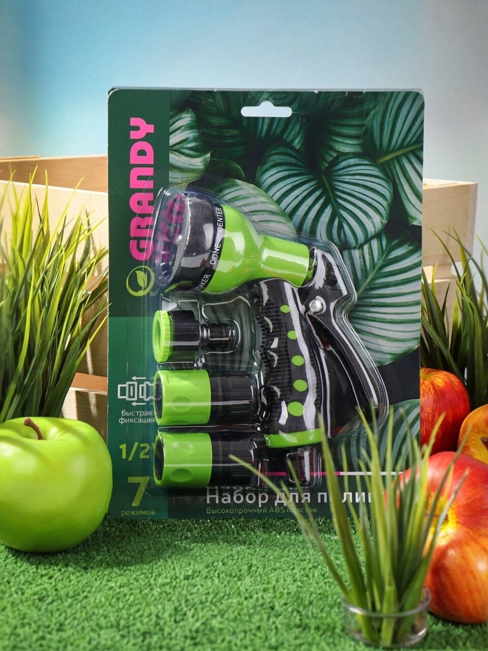 Идеальное решение для ухода за садом и огородом — набор для полива Grandy JS-9369. Комплект из 4 предметов включает пистолет с 7 режимами, фитинги для шланга 1/2", штуцер для крана 1/2"-3/4" с наружной резьбой. Универсальное подключение и легкость в использовании обеспечивают комфортный полив растений, деревьев, грядок и газонов. Простота монтажа и надежность позволяют быстро организовать систему полива на даче или в саду.