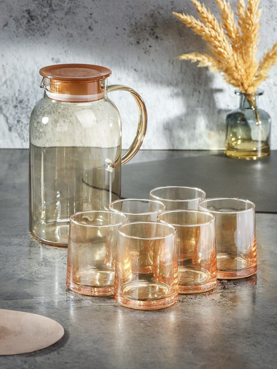 Вы можете приобрести «Набор для горячих и холодных напитков боросиликатное стекло, 7 предметов, кувшин 1.8 л, 6 стаканов 240 мл, Медовый соблазн, B050171» и другие товары в нашем интернет-магазине в Серпухове по низким ценам и с бесплатным самовывозом.