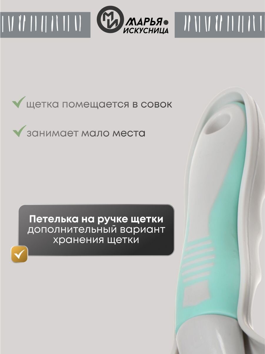 Щётка-смётка идеально подойдёт для сметания мусора со стола и других поверхностей. Щётка состоит из пластиковой колодки с густым ворсом и удобной рукоятки с отверстием для подвешивания. Изделие в комплекте имеет совок оснащённый резиновой накладкой, который идеально прилегает к поверхности пола для более удобного сбора мусора. Щётка плотно закрепляется в ручке совка. Комплект имеет компактный размер и не займёт много места при хранении.