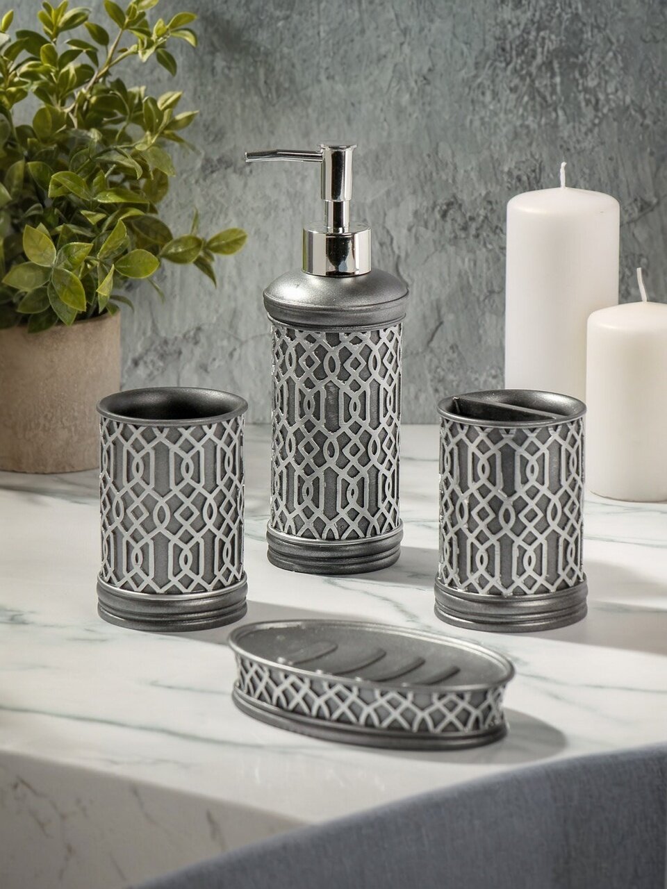 Вы можете приобрести «Набор для ванной 4 предмета, Элегант, стакан, подставка для зубных щеток, дозатор для мыла, мыльница, Y3-873» и другие товары в нашем интернет-магазине в Липецке по низким ценам и с бесплатным самовывозом.