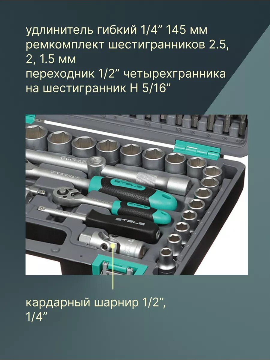 Вы можете приобрести «Набор слесарных инструментов Stels, 14106, 1/2", 1/4", сталь, кейс, 94 предмета» и другие товары в нашем интернет-магазине в Казани по низким ценам и с бесплатным самовывозом.