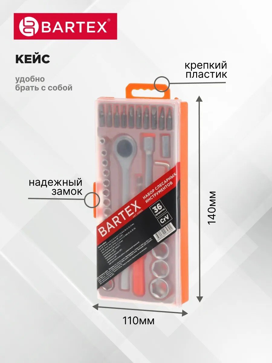 Вы можете приобрести «Набор слесарных инструментов Bartex, 6-гранный, сталь, кейс, 36 предметов» и другие товары в нашем интернет-магазине в Клинцах по низким ценам и с бесплатным самовывозом.