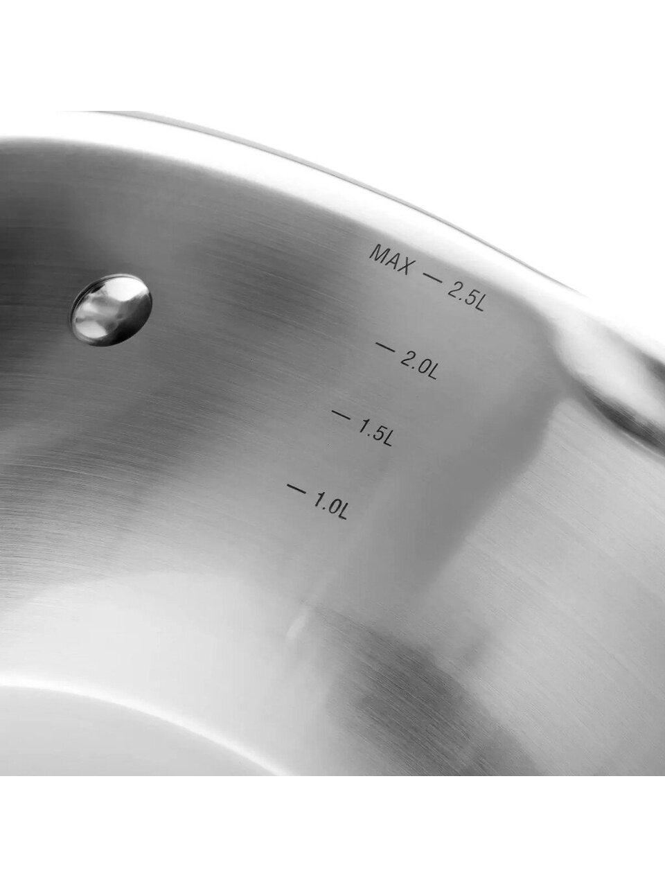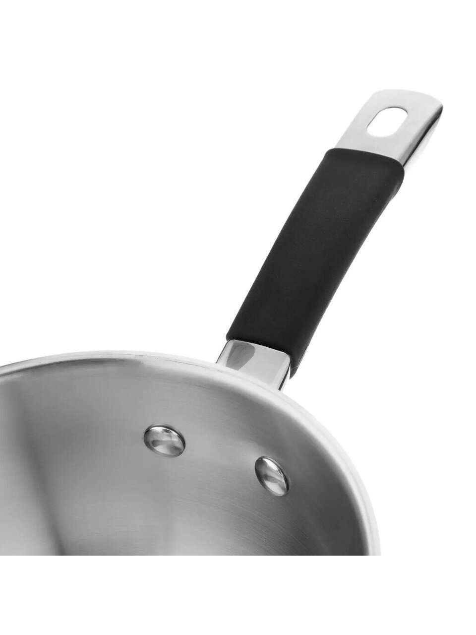 В комплекте кастрюли разных объемов (1.8, 2.5, 4.5 л) и удобный ковш 1.3 л — это позволяет готовить как небольшие порции, так и блюда на всю семью, экономя время и место на кухне.