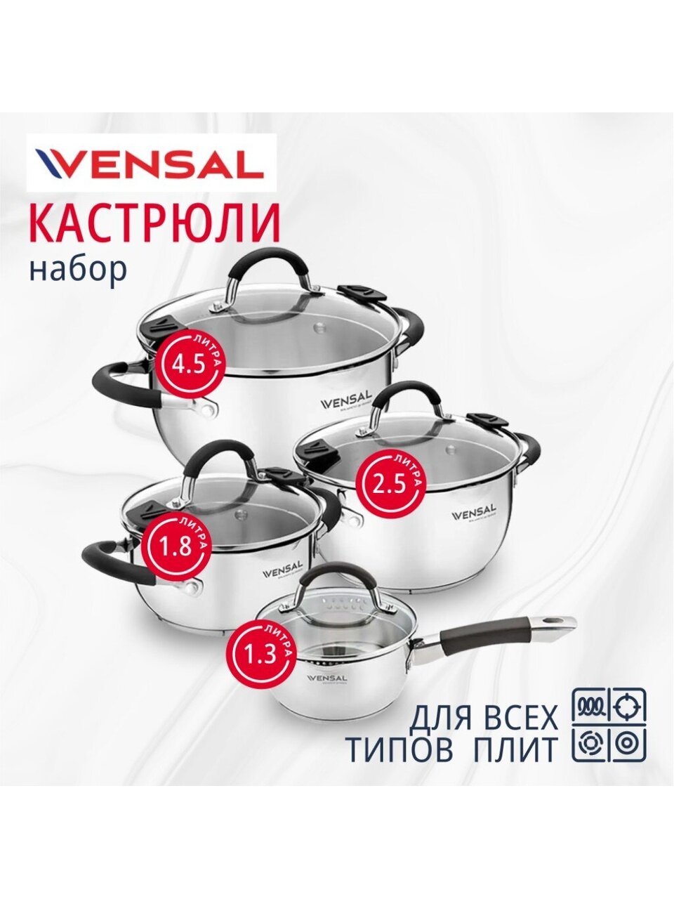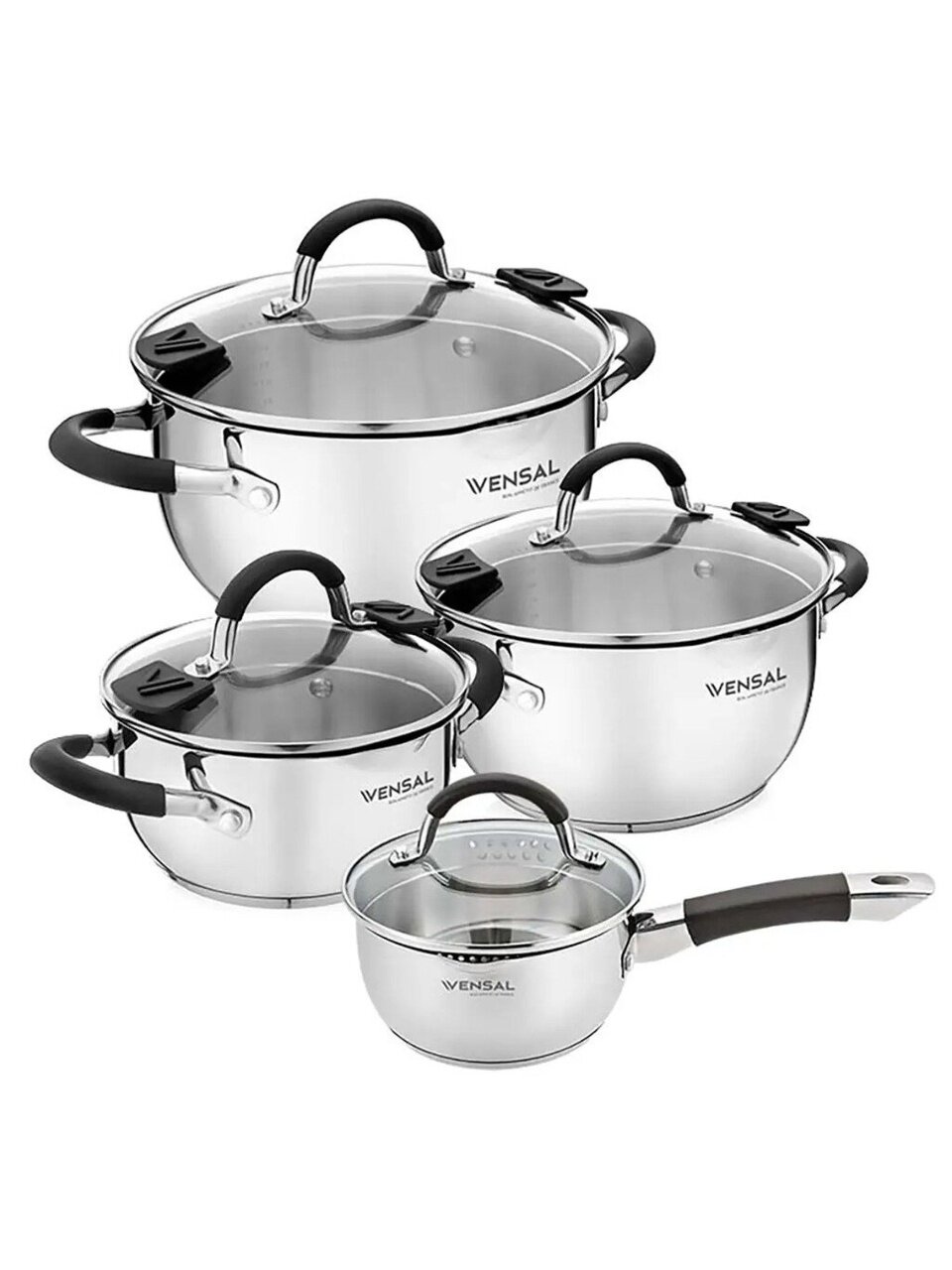 Набор посуды из нержавеющей стали Vensal Magique: 8 предметов для индукции, идеальный выбор для семьи и подарка — долговечность, стиль, универсальность.