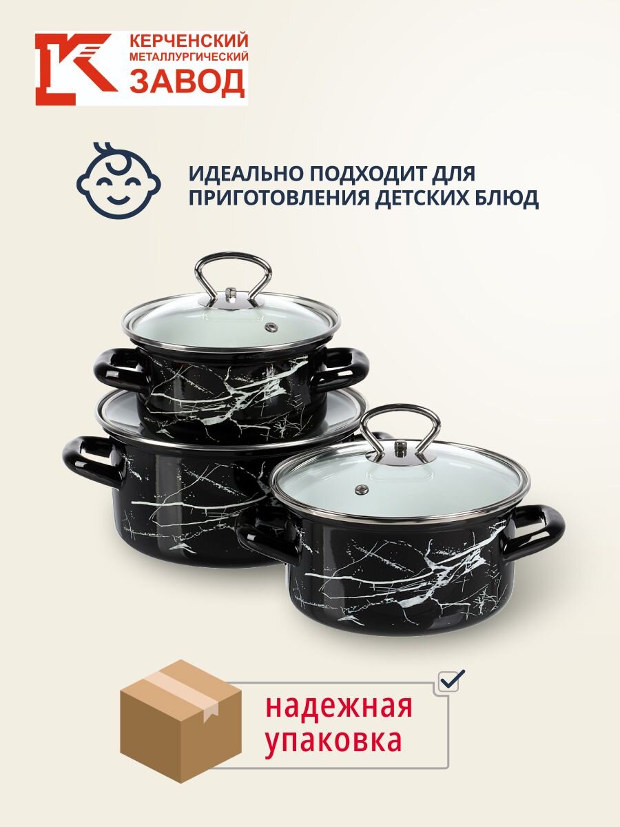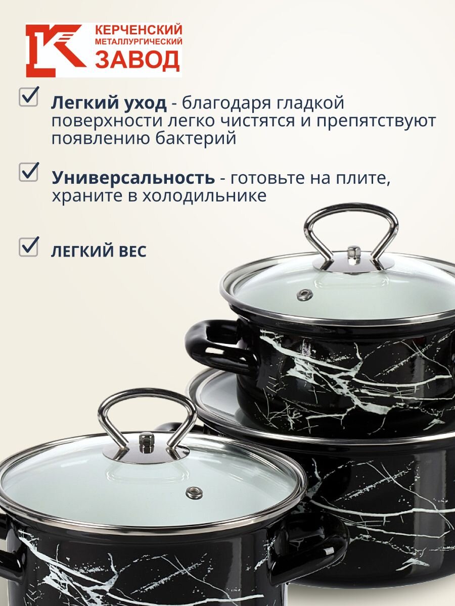 Вы можете приобрести «Набор посуды эмалированная сталь, 3 предмета, 1, 1.5, 2.3 л, МП, Керченский металлургический завод, Черный мрамор-1-Экстра стиль, черный» и другие товары в нашем интернет-магазине в Краснодаре по низким ценам и с бесплатным самовывозом.