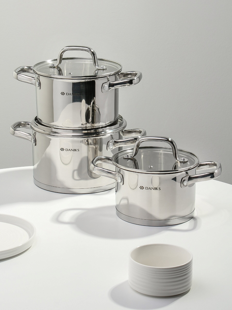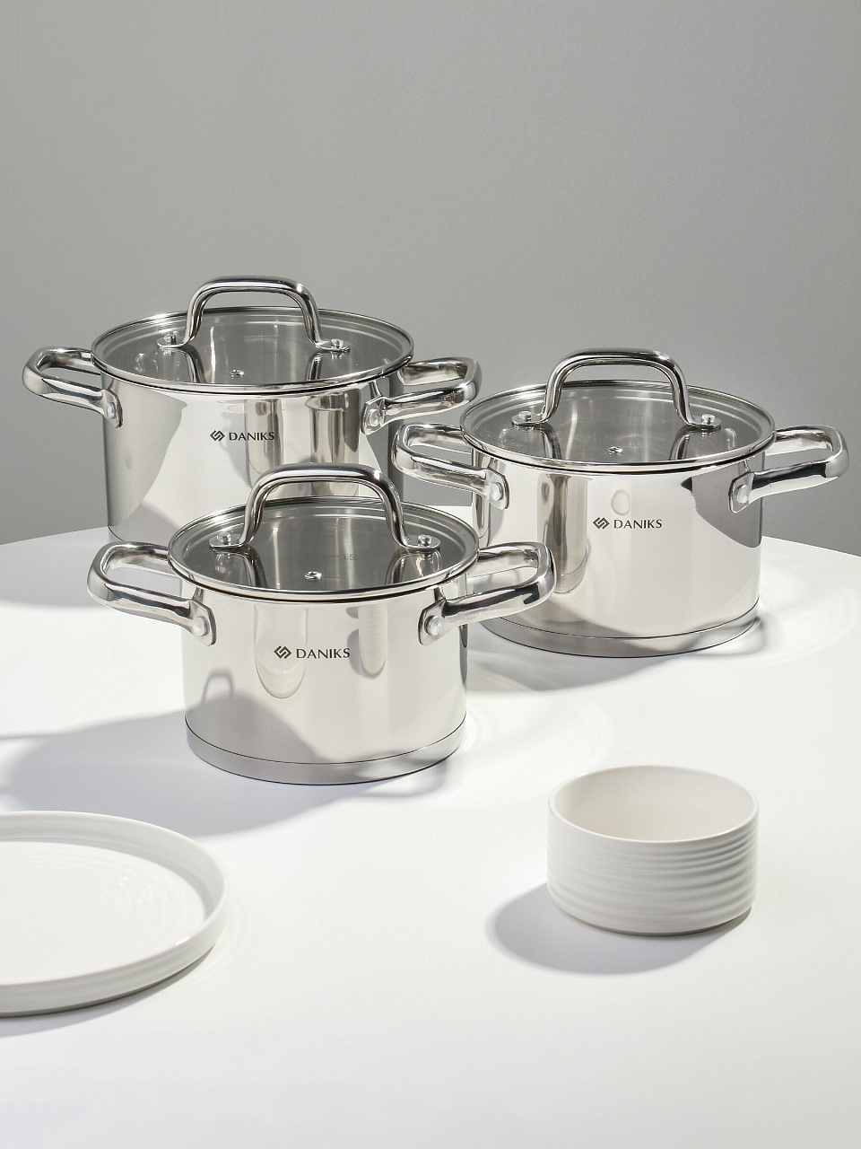 Набор посуды Daniks Рейн: 6 предметов из нержавеющей стали для индукции — оптимальный выбор для дома и дачи, долговечность и универсальность без переплат.