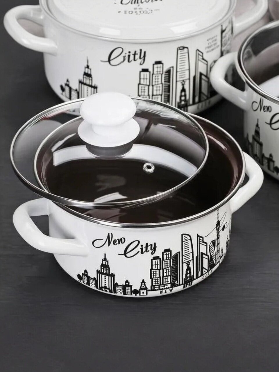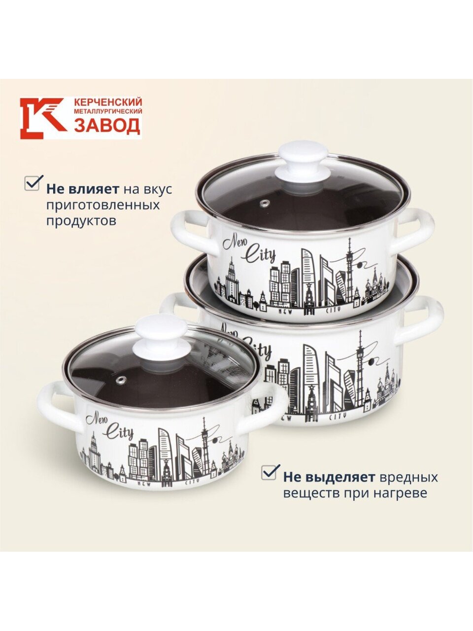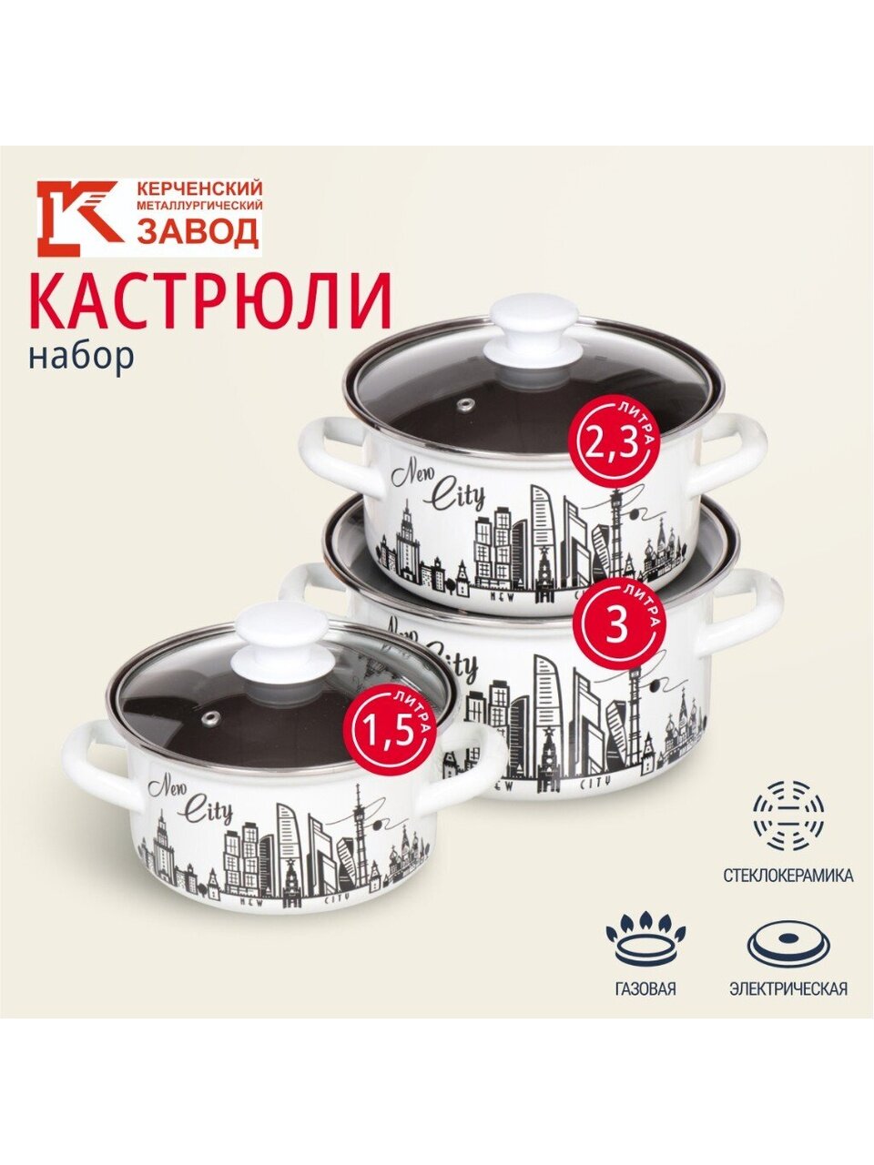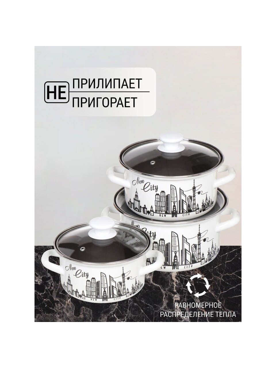 Универсальные размеры кастрюль (1.5, 2.3, 3 л) позволяют готовить разные блюда без переплат, классический белый дизайн впишется в любую кухню, а доступная цена делает этот комплект отличным подарком.