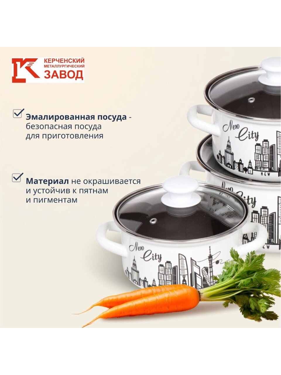 Набор посуды из эмалированной стали «Новый город-1-Экстра» от Керченского металлургического завода — это удачное решение для тех, кто ищет, какой набор кастрюль купить недорого для дачи или дома. Эмалированная поверхность защищает сталь от ржавчины и облегчает уход, а стеклянные крышки позволяют контролировать процесс приготовления без лишних усилий. Если вы спрашиваете, чем отличается эмалированная посуда от алюминиевой или с антипригарным покрытием, — эмаль не вступает в реакцию с продуктами, не выделяет вредных веществ, подходит для приготовления супов, каш, компотов.