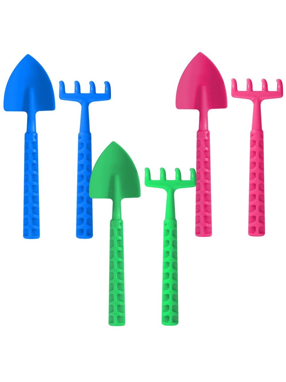 В наборе 2 предмета — совок и грабли. Изготовлены из прочного пластика, устойчивого к деформации при контакте с влажной почвой.