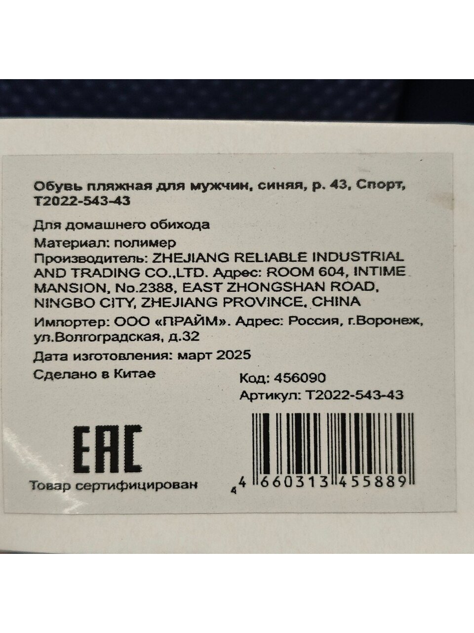 Вы можете приобрести «Обувь пляжная для мужчин, синяя, р. 43, Спорт, T2022-543-43» и другие товары в нашем интернет-магазине в Курске по низким ценам и с бесплатным самовывозом.