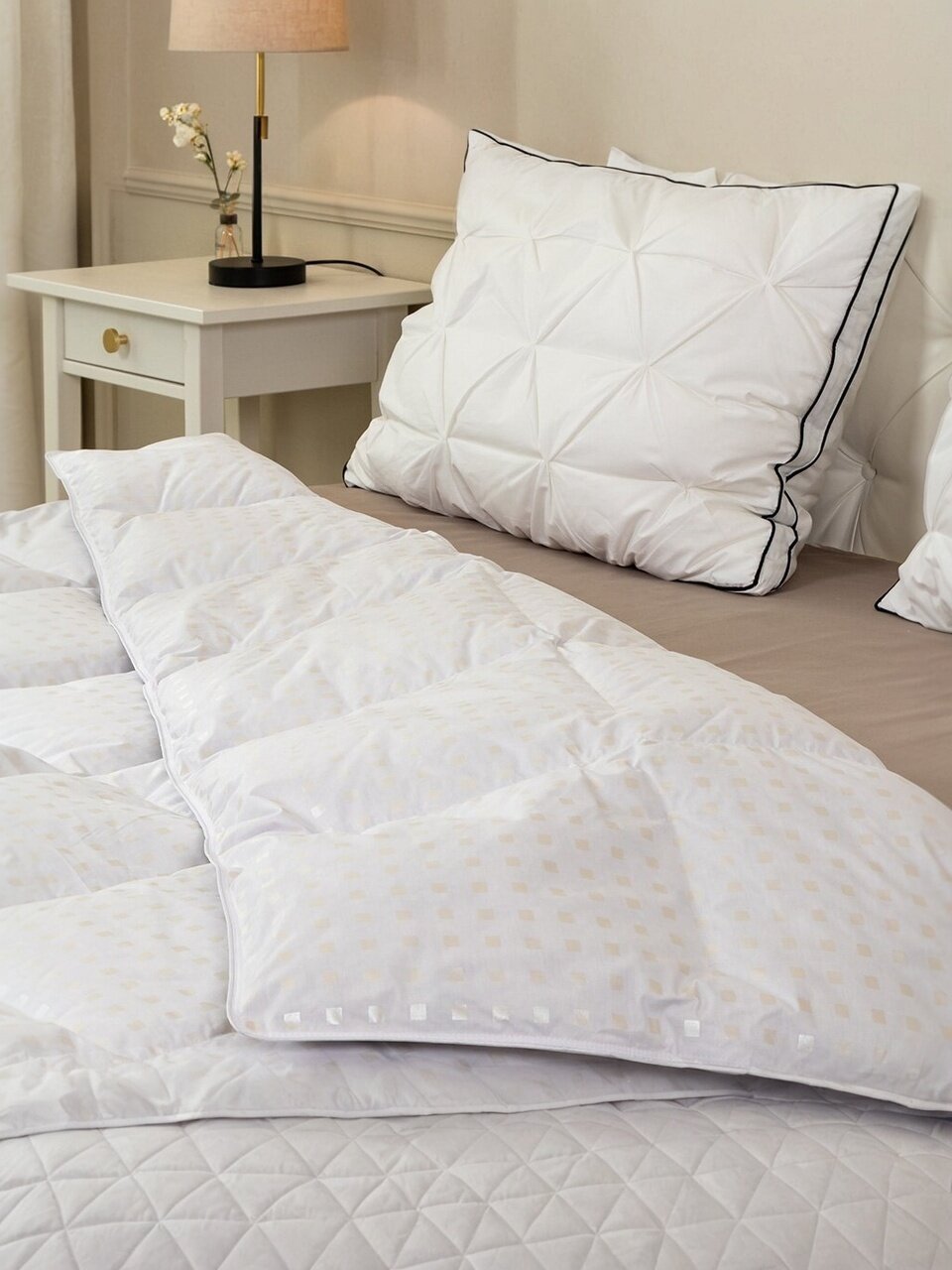 - Универсальный размер 175х205 см и долговечный чехол из тика: оптимально для двуспальной кровати и частого использования