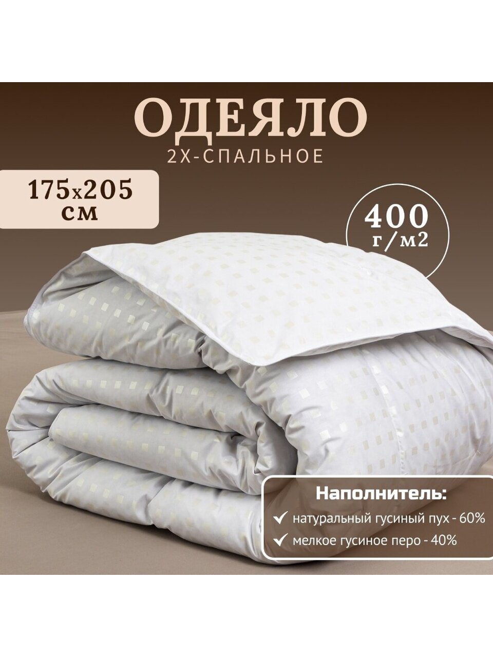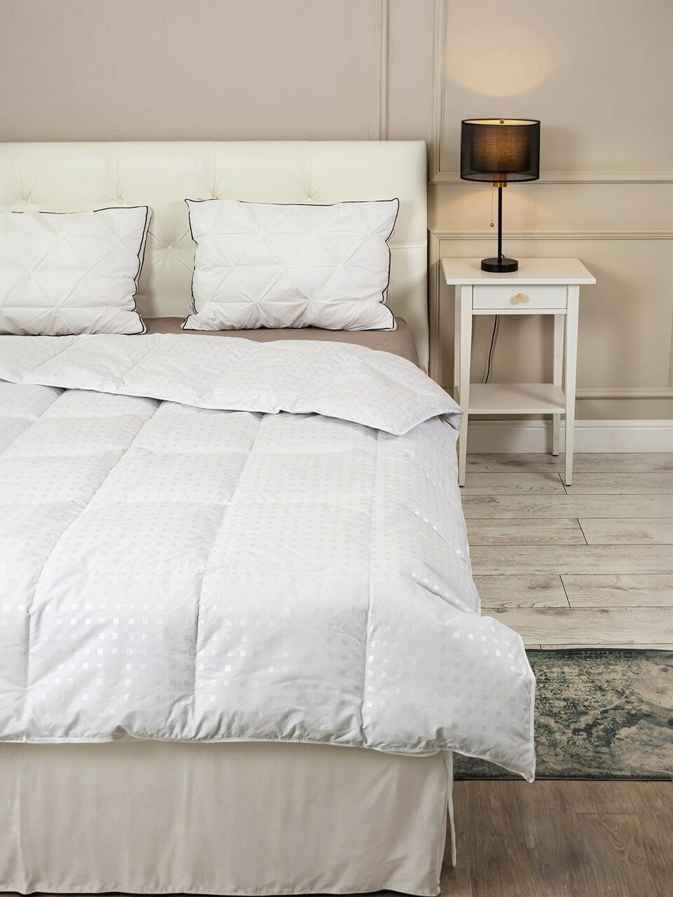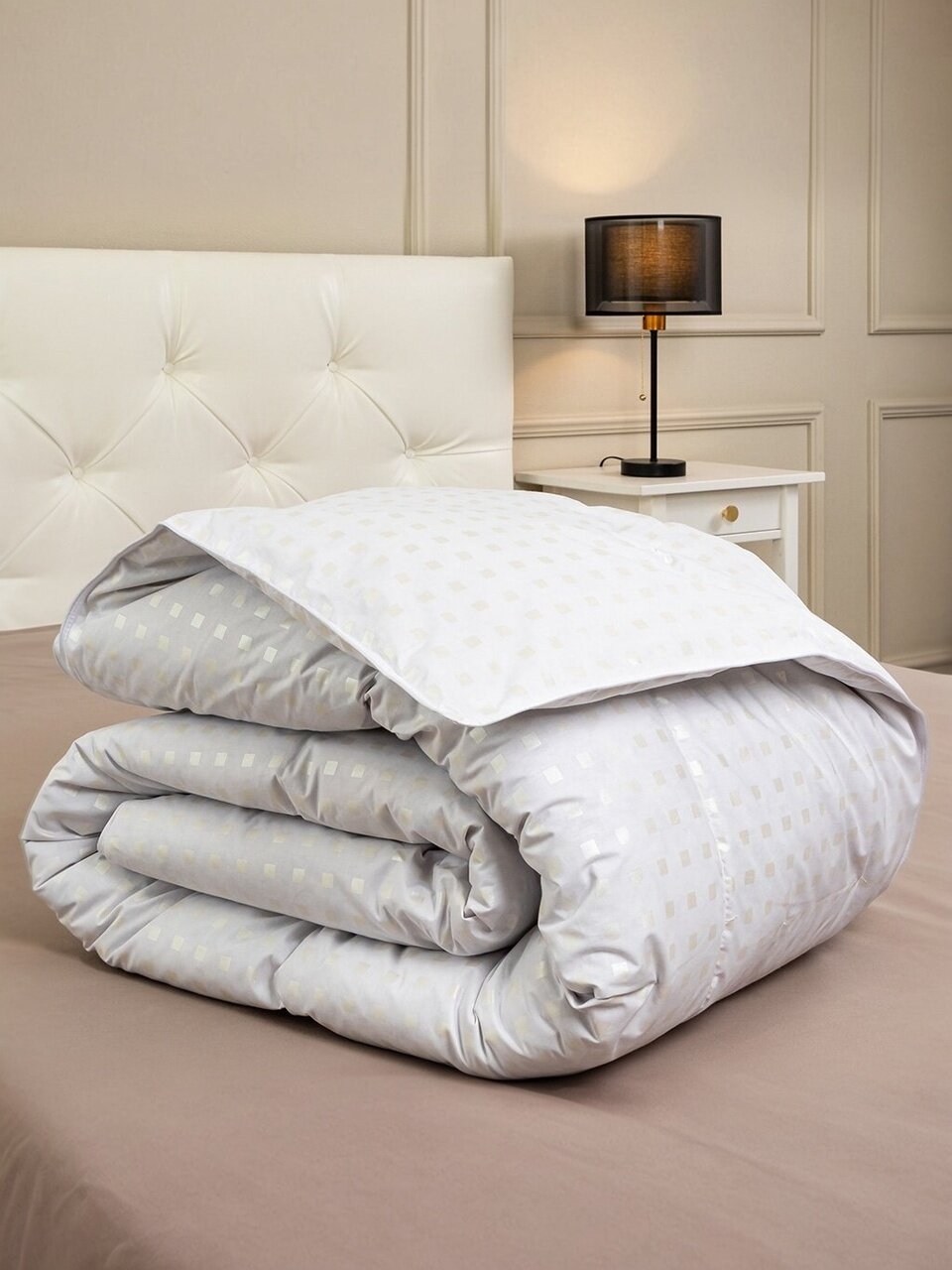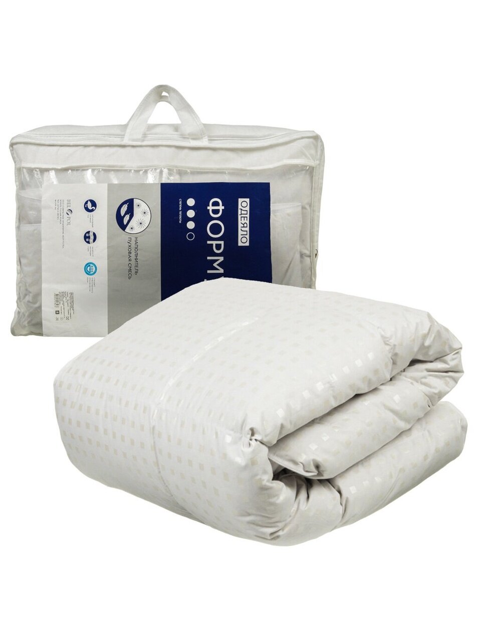 Одеяло 2-спальное 175х205 см Формула: уют и тепло зимой благодаря 60% пуху, натуральному тиковому чехлу и средней плотности для комфортного сна.
