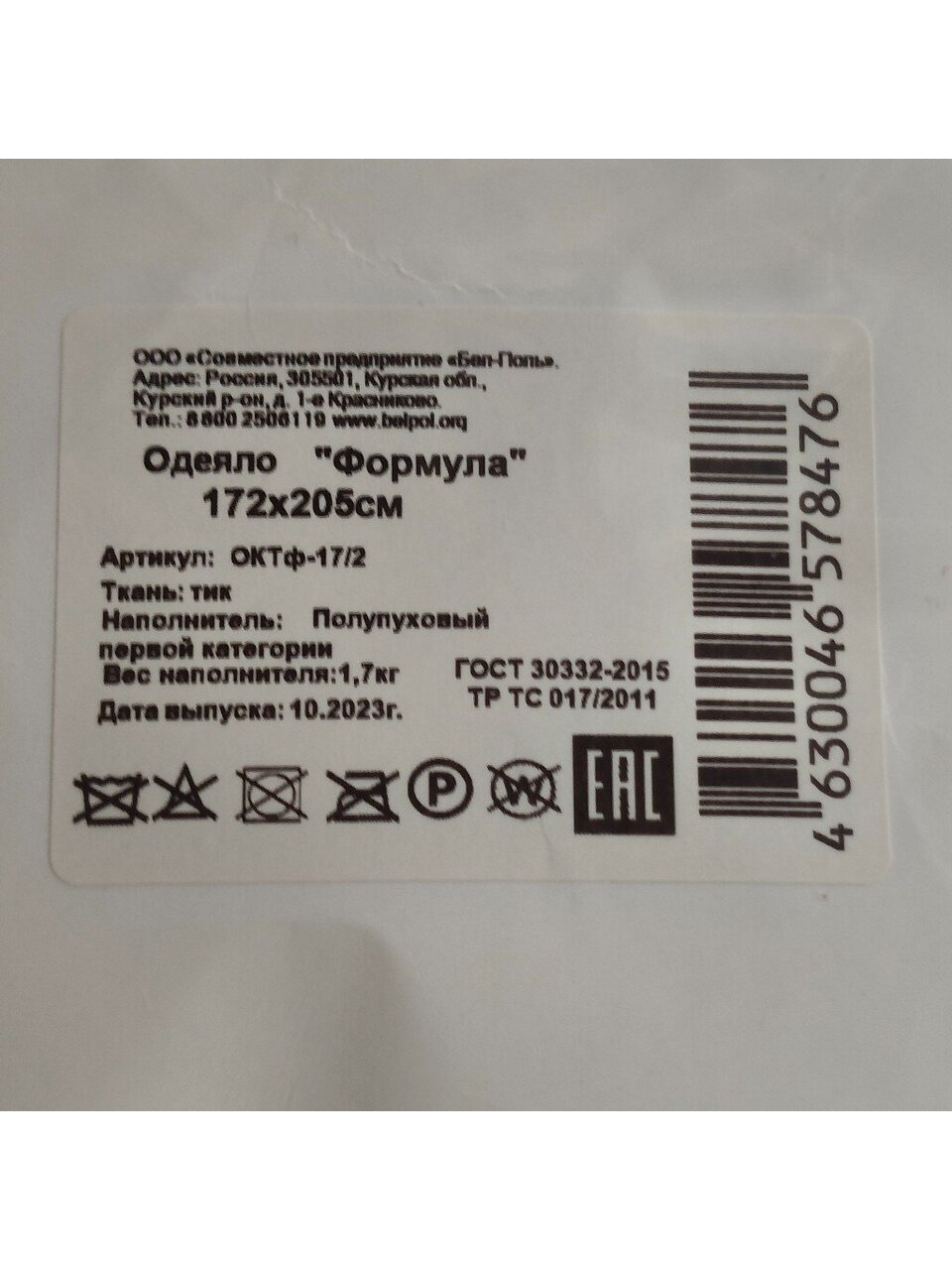 Вы можете приобрести «Одеяло 2-спальное, 175х205 см, Формула, полупух I кат, пух 60% перо 40%, 400 г/м2, зимнее, чехол тик, кант, Бел-Поль» и другие товары в нашем интернет-магазине в Ставрополе по низким ценам и с бесплатным самовывозом.