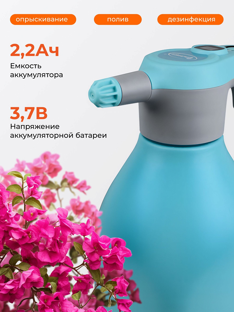 Вы можете приобрести «Опрыскиватель аккумуляторный, Умница, 2 л, Li-ion, 2.2 А.ч, 3.7 В, пластик, ОЭ-2л» и другие товары в нашем интернет-магазине в Коврове по низким ценам и с бесплатным самовывозом.