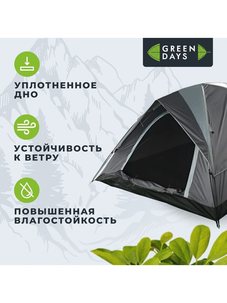 Отдых с палатками дает редкую для современного человека возможность оказаться вдали от городской суеты, насладиться свежим воздухом, тишиной и красотой природы. Палатка дает полную свободу выбора, ведь ее легко взять с собой, куда бы Вы не поехали. Она отлично подойдет для кемпинга, рыбалки, пляжного отдыха, треккинга, туристических походов, охоты, экспедиций, отдыха на природе. Сделайте свое приключение незабываемым, выбрав палатку Green Days.