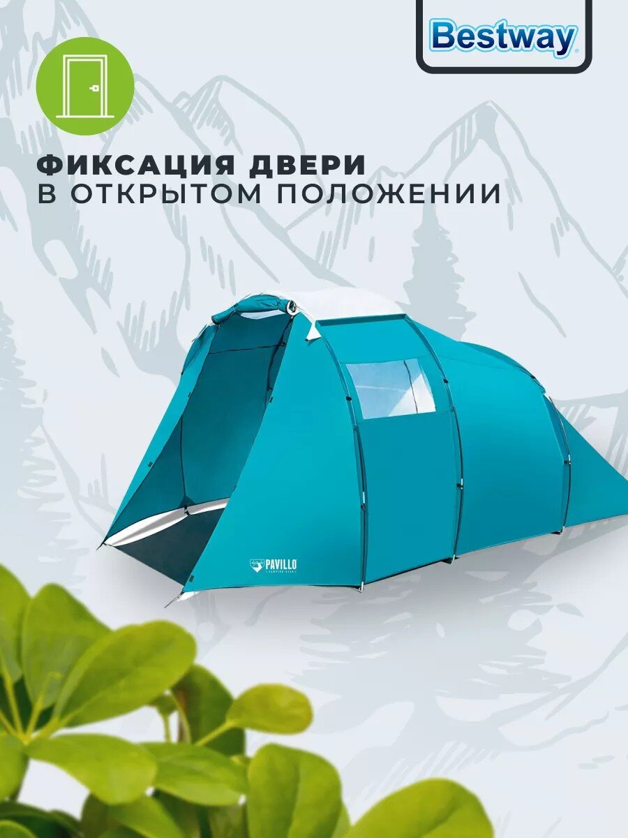 - Обтекаемая структура палатки обеспечивает устойчивость при ветре;
