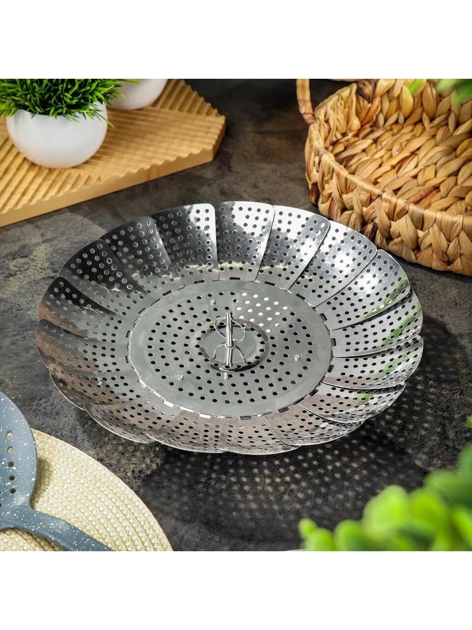 Пароварка является идеальным помощником в приготовлении диетических блюд. Она предназначена для варки овощей, мяса и рыбы на пару, сохраняя их витамины и натуральный вкус и аромат. Эта универсальная модель подходит для кастрюль разных диаметров и может использоваться для подачи на стол. Изготовлена из высококачественной нержавеющей стали.