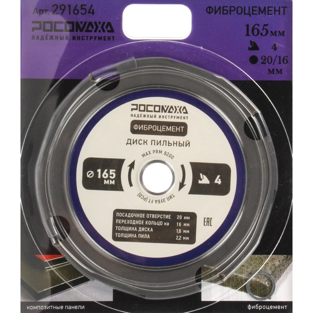 Для фиброцемента лучше всего подходит диск с сегментной кромкой и минимальным числом зубьев — как Росомаха 165х20/16 мм, 4 зуба. Такой диск даёт чистый срез без сколов и не перегревает материал.
