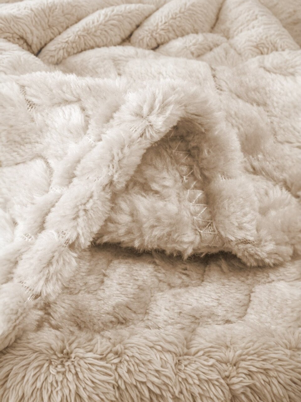 Плед можно стирать в машинке при температуре 30–40°C, он быстро сохнет, не теряет цвет и форму, не требует глажки.