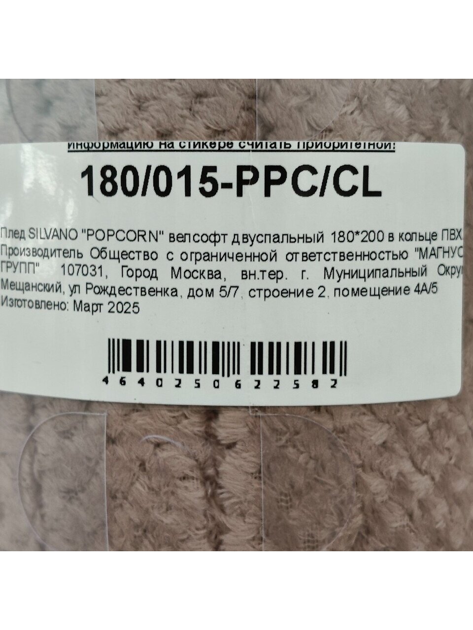 Плед 2-спальный Silvano Popcorn 180х200 см — уютное тепло и стиль для дома или дачи по выгодной цене. Идеальный размер, мягкий велсофт, трендовый цвет какао.