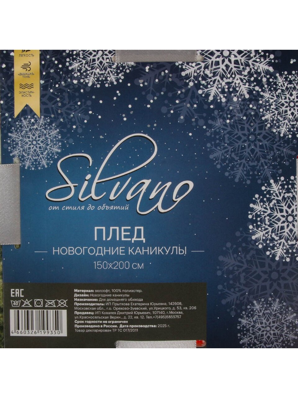 Плед 1.5-спальный Silvano «Новогодние каникулы» 150х220 см: мягкий велсофт, уют для зимы и стильный подарок по доступной цене.