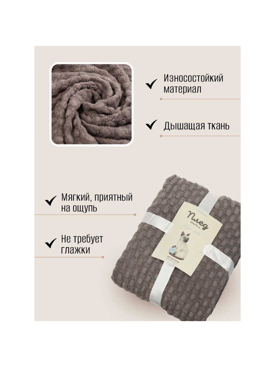 - Высокая тактильная комфортность. Плед мягок и очень приятен на ощупь, не вызывает раздражения кожи.