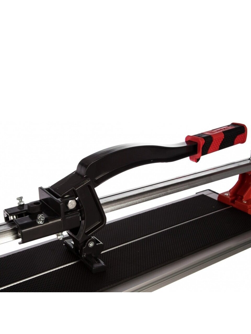Рельсовый плиткорез - это новая модель плиткореза. Он применяется для резки керамической кафельной плитки толщиной до 16 мм. Несущая каретка инструмента охватывает рельс с двух сторон и передвигается посредством шарикоподшипникового механизма.