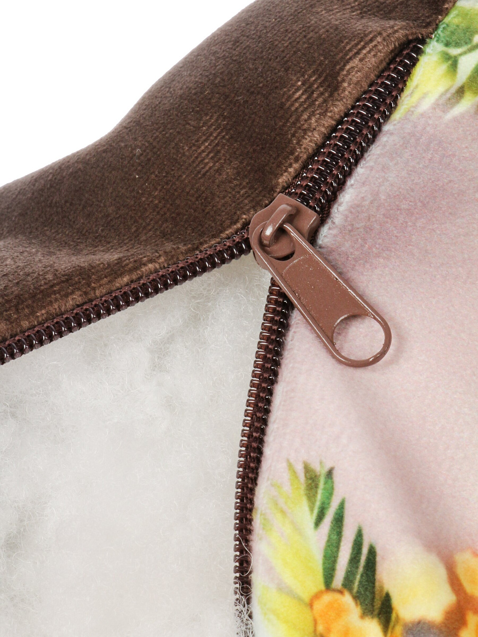 Наволочка — 100% полиэстер, наполнитель — полиэфирное волокно. Рекомендована деликатная стирка при 30°C, изделие сохраняет форму и цвет после многократных стирок.